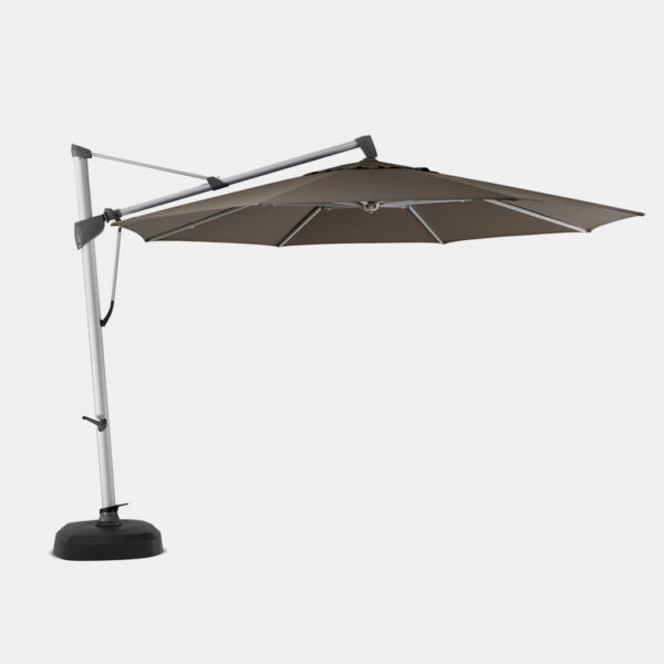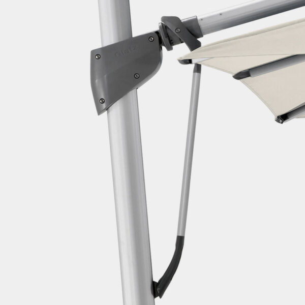Peso do ombrellone (sem a base): 34kg para o 3,00×3,00m e ø3,50m | 36kg para o 3,50×3,50m e ø4,00m