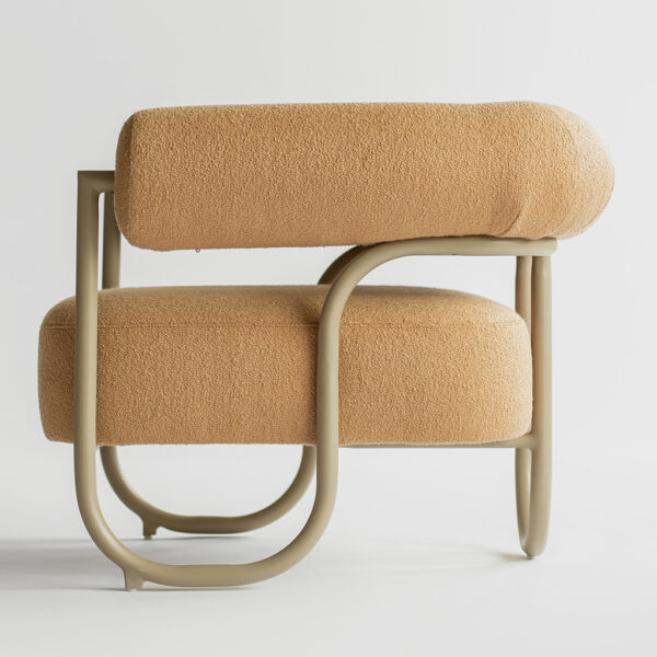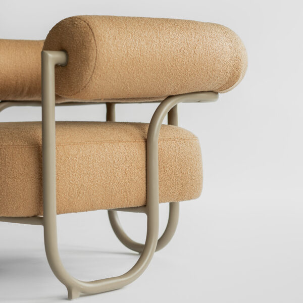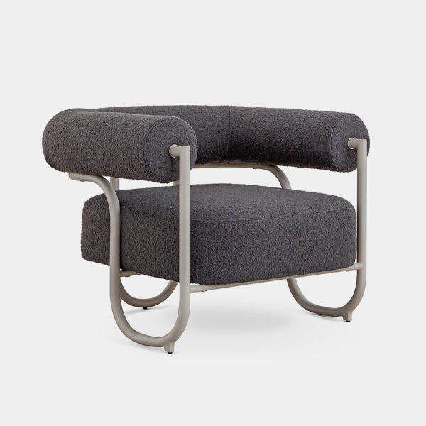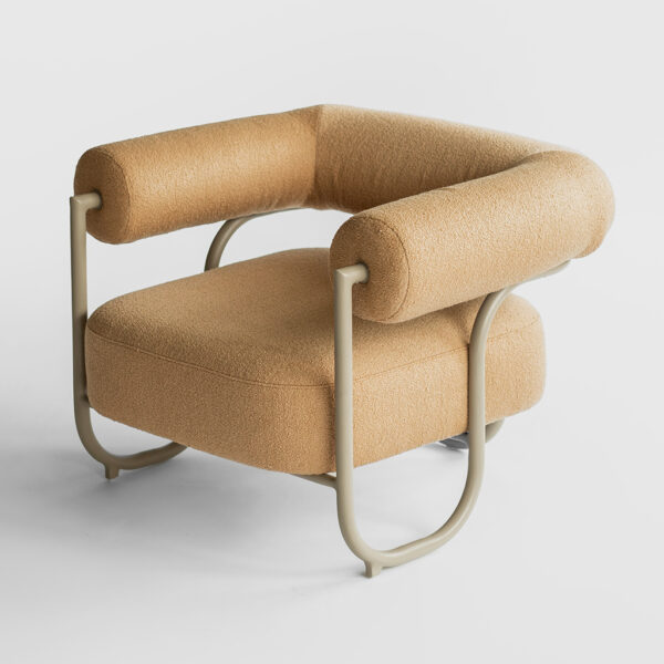 Seu nome, “TuBoo,” deriva da estrutura tubular única que abraça todo o contorno da poltrona, criando uma estética distintiva. Essa estrutura, com suas curvas suaves, desenha um perfil moderno e agradável, proporcionando uma sensação de movimento e harmonia.
